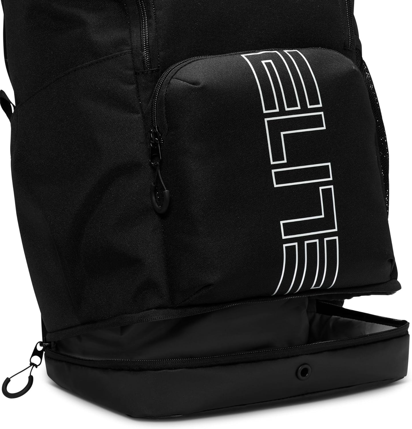 The Varsity Elite backpack holds everything you need to hoop. A large main compartment fits up to a full-size basketball. Exterior front pocket allows quick access to small items and a bottom pocket keeps sweaty clothes and dirty shoes separate. A trolley sleeve allows you to attach it to your luggage when traveling for those away games.